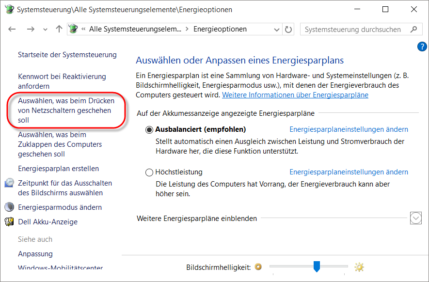 Dort klicken Sie links auf den Eintrag "Auswählen, was beim Drücken von Netzschaltern geschehen soll":